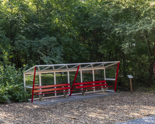 Op het grasveld staat ook één van de dug-outs uit stadion De Meer. In deze dug-out hebben veel iconische spelers en trainers hun wedstrijden beleefd. Bezoekers kunnen hier een moment voor zichzelf nemen.